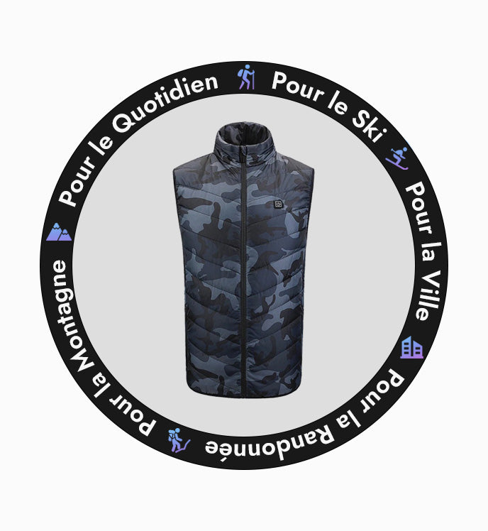With a construction optimized for its flexibility and technicality, it favors style and ergonomics. Dressed in military camouflage, it features fabric wraps filled with synthetic insulation . This creative process gives it lightness and comfort. It can easily be folded and placed in your bag to be used during cold or rainy weather to avoid any risk of hypothermia. In addition, with its heating system , your comfort will only be better.
