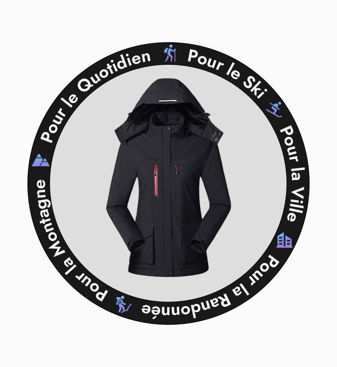 D'une grande polyvalence, cette veste chauffante impermeable pour femme vous suivra dans toute vos aventures.
