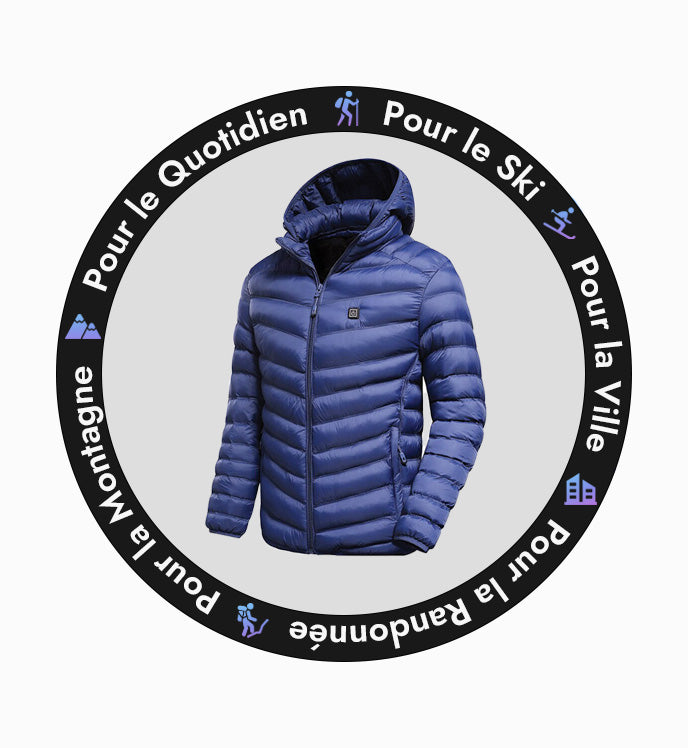 The design of fabric envelopes padded with down that make up this heated hiking jacket, allows obtaining a garment combining lightness and performance.