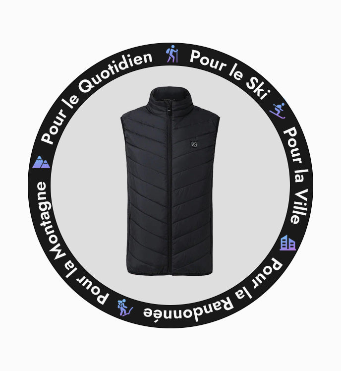 Tout aussi élégant et facilement transportable que cette veste, notre gilet sans manche propose les mêmes performances. Élaboré avec des tissus légers et souples, il permet de se prémunir des temps froids à tout instant comme nos autres gilets chauffants. Si vous êtes un afficionados de balades en extérieur à n'importe quel moment de l'année, notre sélection de vestes chauffantes pourra vous plaire. Proposant des parkas et manteaux techniques adaptés à toutes les situations, vous y trouverez sûrement le modèle le plus adapté à vos sorties.