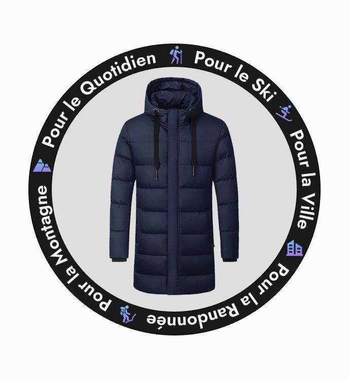 Étudiée pour combiner un design urbain et une performance alpine, cette longue doudoune chauffante possède une résistance au froid inégalée.